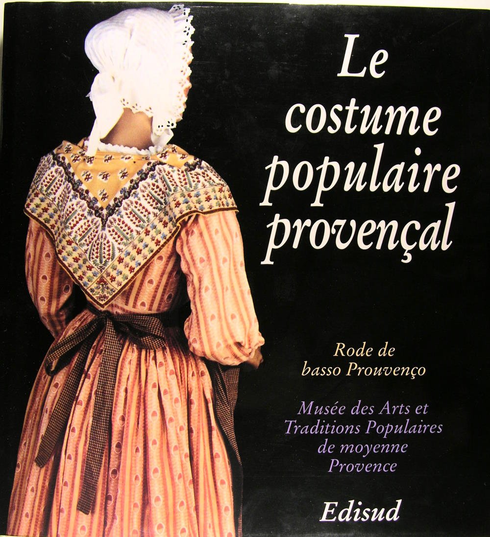 Edisud / Musée des Arts et Traditions populaires de moyenne Provence, 1990, in/4 carré, reliure éditeur et jaquette en couleurs, 223 pages. Illustrations en couleurs et en noir et blanc, in fine 18 planches coupe de vêtements. Le costume régional : Le costume féminins ; Le costume masculins ; les accessoires ; les bijoux ; les techniques, bibliographie, lexique Français / Provençal.