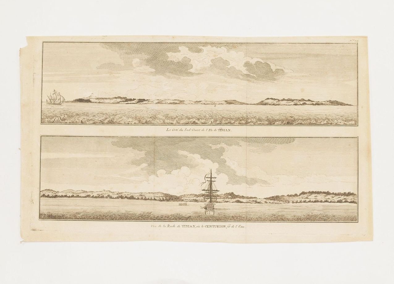 Veduta del 1760, la veduta dell'Isola di Tinian Nord delle isole Mariana. Data: 1760 Autore: Jacob Von Schley Tecnica: incisione su rame Dimensione del foglio: 23,5x39,5 cm (9.3x15.6 inches) Dimensione dell'incisione: 20,5x30,5 cm (8.1x12 inches)<BR> Conditzioni: Ottime. Alcune fioriture. Fori di tarlo ai marginiPrint of 1760 showing the view of Island of Tinian Northern Mariana Islands. Author: Jacob Von Schley Date: 1760 Technique: Copper etching Leaf Dimension: 23,5x39,5 cm (9.3x15.6 inches) Engraving Dimension: 20,5x30,5 cm (8.1x12 inches) Conditions: Very good conditions. Some foxings. Foldings. Wormings in the edges.