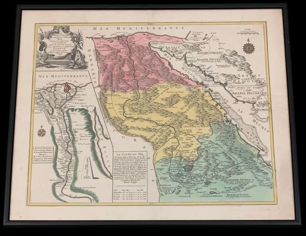 In folio (59x73 cm il foglio); esemplare in fine coloritura coeva ed in ottime condizioni di conservazione. Testo in francese in cartiglio. Magnifica e vivida tiratura di questa celeberrima carta del territorio egiziano che si sviluppa lungo il corso del fiume Nilo, con parte del territorio dellArabia Saudita, dellEtiopia e Abissinia e del territorio di Suez con ben presente il Mar Rosso con anche evidenziate le profondità. La carta fu stampata dal successore e cognato del grande cartografo Matthaus Seutter (sposò una delle figlie di Seutter), il cartografo, editore ed incisore Tobias Conrad Lotter (1717 - 1777). Lotter, si formò alla bottega di Matthaus Seutter per il quale lavorò. Alla morte di Seutter ne rilevò lattività che portò avanti fino al 1777 anno della sua morte. Lattività passo poi al figlio, Matthias Albrecht Lotter. Tobias Conrad fu uno dei più apprezzati cartografi del settecento. Il carta si ispira ai dati riportati dal gesuita R. Pere Sicard, da Alphonse Mendez, Emanuel LAmeyda, Pierre Pays e di altri celebri missionari e studiosi gesuiti. Esemplare in ottime condizioni di conservazione ed in bella coloritura coeva. Esemplare in ottime condizioni di conservazione.