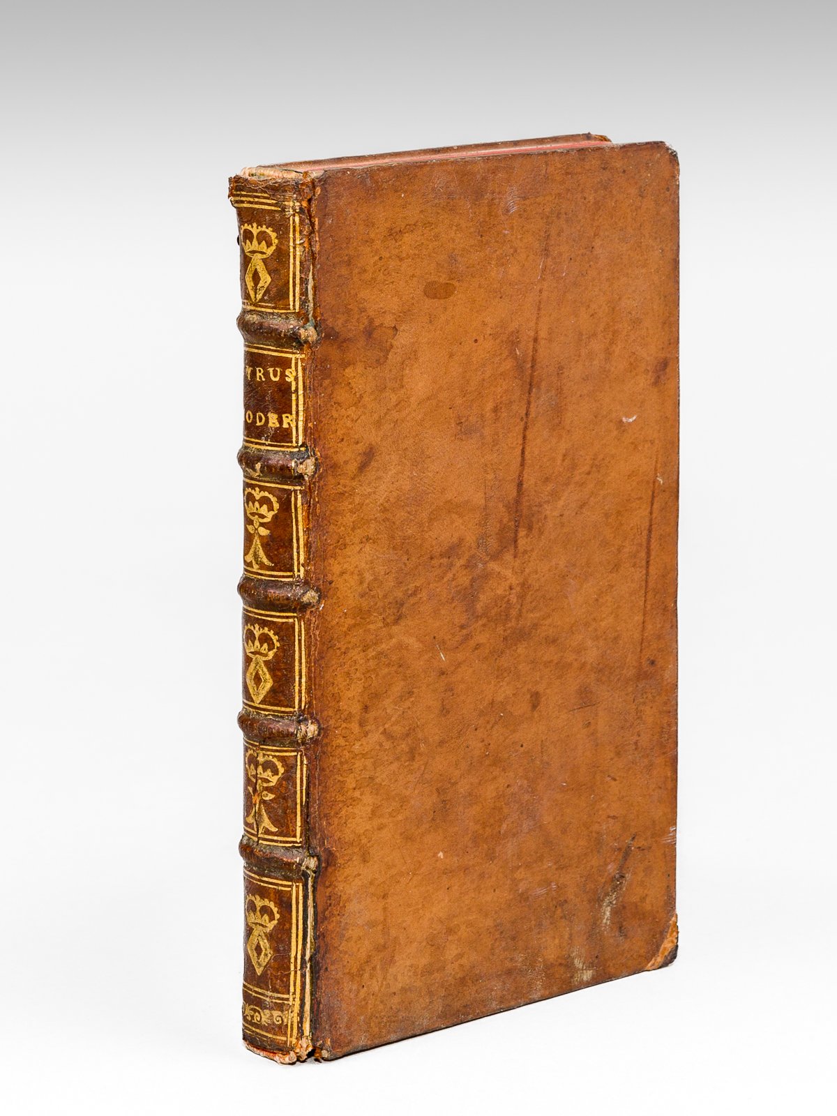 Par Son Excellence, Monsieur J. P. de Ludewig, Traduit en François par Godefroi Sellius, 1 vol. in-12 reliure de l'époque pleine basane marron, dos à 5 nerfs orné (fleurons d'hermine et de losange couronnés), Chez Adrien Moetjens, A La Haye, 1737, 5 ff., 236 pp. Rappel du titre complet : Le Cyrus moderne, ou, Discours sur les Moiens de Rendre un Etat Heureux et Puissant. Prononce? a? l'occasion de l'Erection de la nouvelle Chaire de Professeur en Oeconomie, Police & Domaines, erige?e a? l'Acade?mie de Hall, par ordre de Sa Majeste? Prussienne en MDCCXXVII L'allemand Gottfried Sellius (1704-1767) traduit ici l'ouvrage de son célèbre collègue de l'Université de Halle, l'historien et juriste Johan Peter von Ludwig (1668-1758), successeur de Christian Thomasius. Il semble s'agir de la traduction de "Die zu Halle 1727 neuangerichtete Profession in Oeconomie-Policey und Cammer Sachen" dans lequel Ludewig insiste notamment sur l'importance d'une normalisation et d'un contrôle des poids et mesures. Quant à Sellius, il sera le promoteur de l'Encyclopédie de Diderot et d'Alembert, ayant suggéré à l'éditeur Le Breton d'acheter les droits de la Cyclopaedia de Chambers. Bon état (petits frott. et très petits mq. en coiffes et mors, coins frottés, bon exemplaire par ailleurs, ex-libris de Jean-Baptiste Fortaire en garde). Ined, 2980