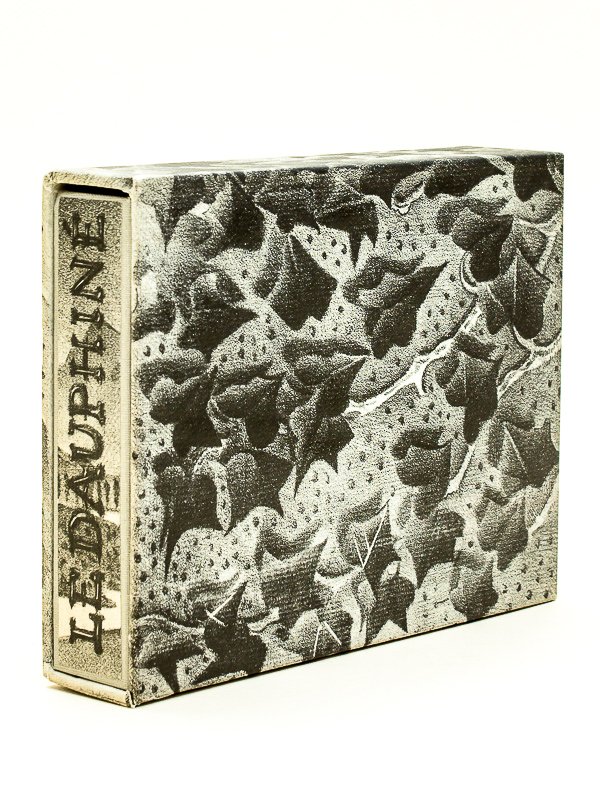15 burins originaux par Michel Béret, un des XV exemplaires numérotés réservés aux Collaborateurs, 1 vol. in-12 format à l'italienne en feuillets sous couv. rempliée illustrée, sous double emboîtage illustré, Michel Béret, Georges Leblanc, Imp., 1956 Bel envoi de Michel Béret. Magnifique petit ouvrage remarquablement illustré par Michel Béret. Ces 15 burins nous présentent des vues du Vercors, de La Table du Roi, Vienne, Saint-Antoine, Valence, Romans, le Mont-Aiguille, La Meije, Vizille, Briançon, Saint-Véran, Château-Queyras, la Grande Chartreuse et Grenoble. Rare.