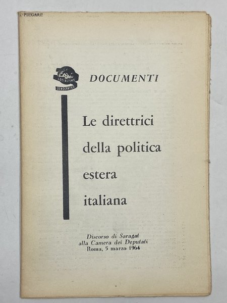 Supplemento al n.3 del 14-3-1964 di Socialismo Democratico, 4 fogli sciolti ripiegati in 16 pagine cm15x22.