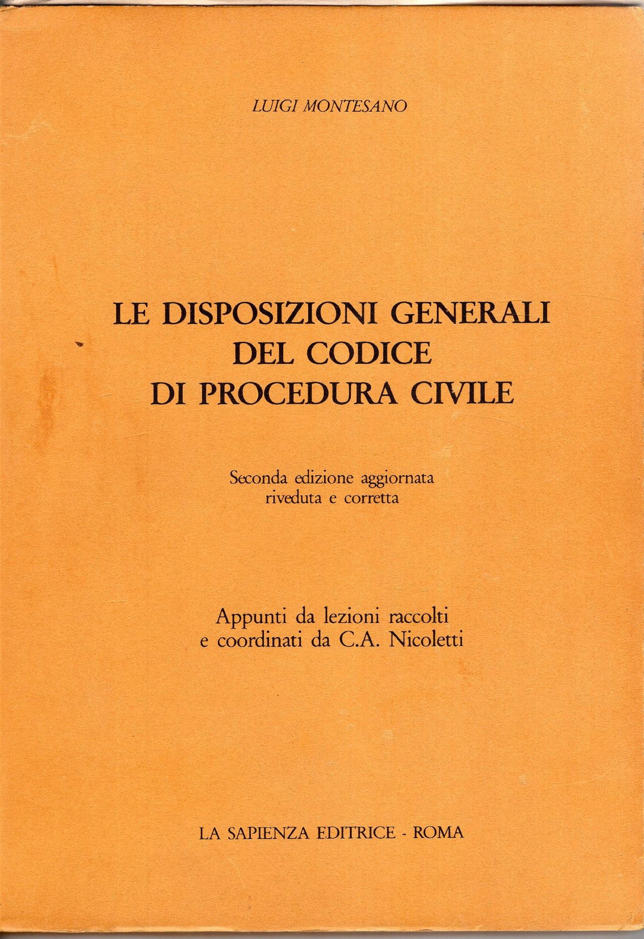 Le disposizioni generali del Codice di procedura civile, appunti da lezioni raccolti e coordinati da C. A. Nicoletti. Seconda edizione aggiornata, riveduta e corretta