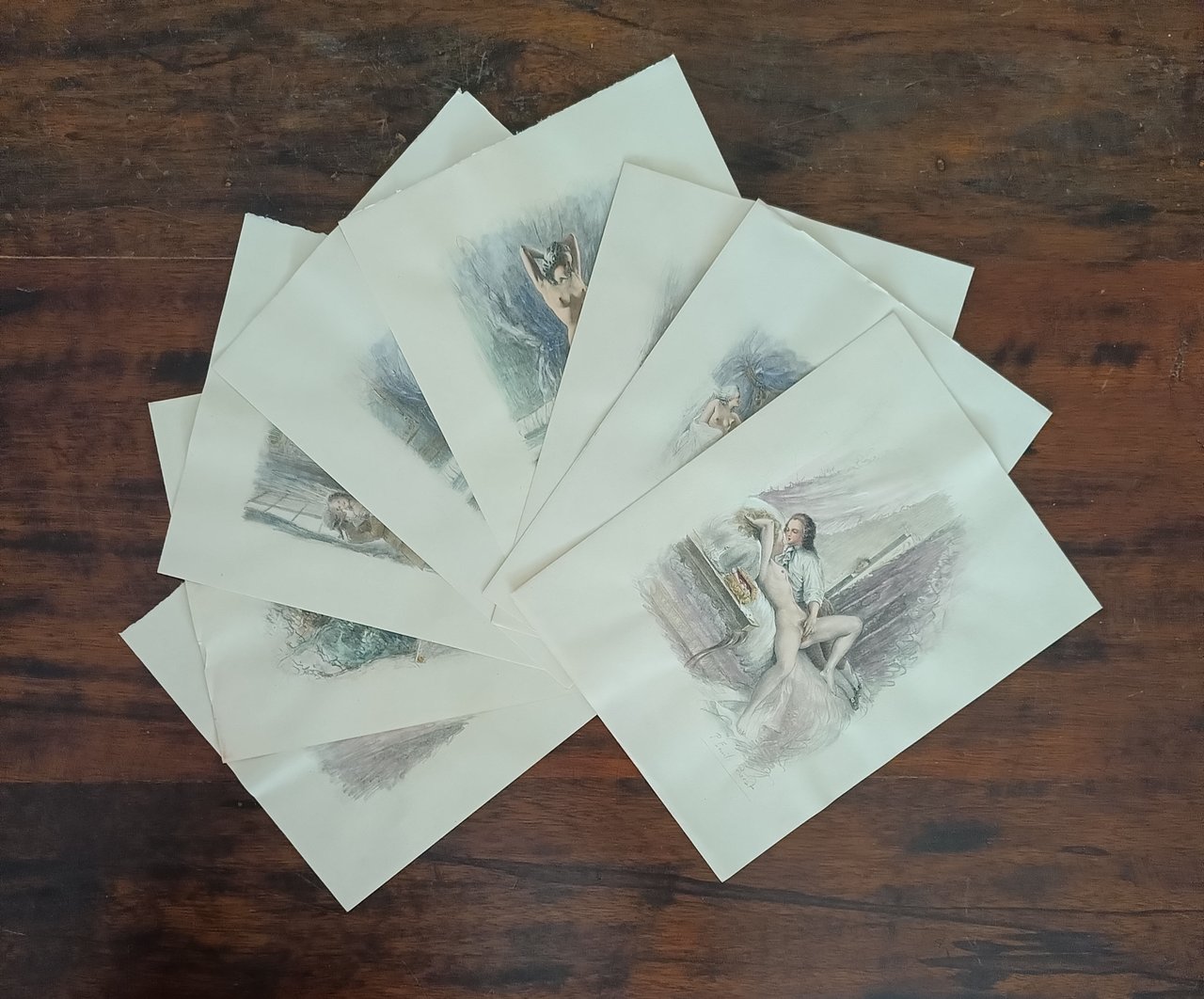 In 8° grande. Fogli e quartini sciolti, copertina incamiciata coperta rigida e cofanetto rigido. Pp. 101. Con 8 tavole a colori f.t. e 10 vignette n.t Edizione di 745 esemplari numerati, ns n XXXI della tiratura di 50 fuori commercio con una suite di 8 tavole sciolte entro pergamino. Generici segni d'uso ai margini del cofanetto e una leggera abrasione al piatto della coperta. Al piede di pagina 27 due piccole macchioline. Le tavole della suite risultano leggermente ondulate in alto. Per il resto ottimo esemplare