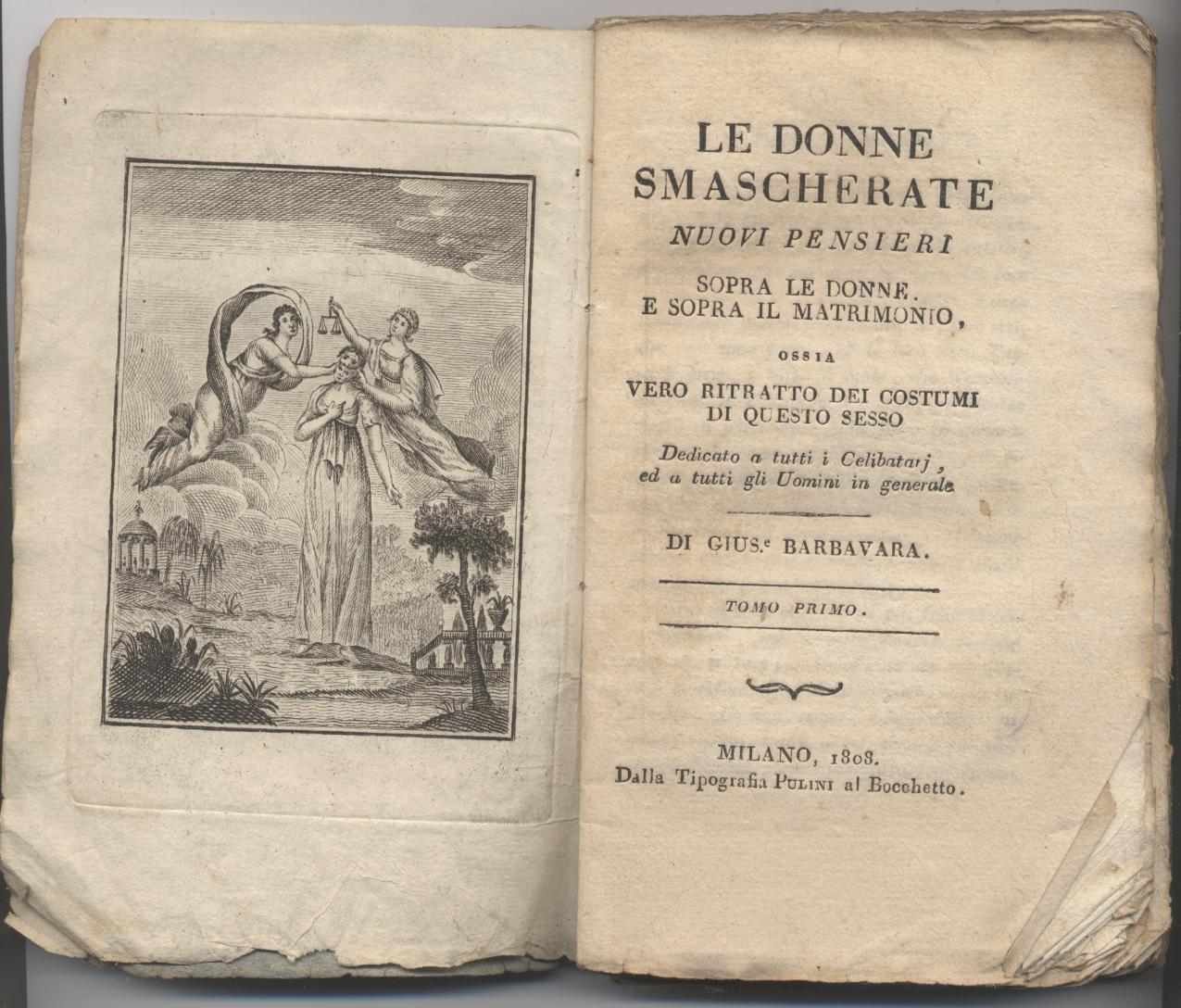 Le donne smascherate (Tomo primo) Nuovi pensieri sopra le donne. E sopra il matrimonio, ossia vero ritratto dei costumi di questo sesso - Dedicato a tutti i celibatarj, ed a tutti gli uomini in genere