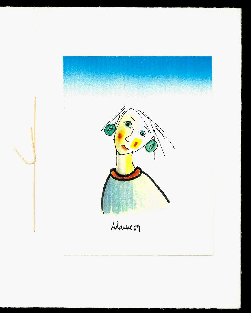 LIBROOttimo esemplare.Edizione n. 7852, stampato in 25 esemplari non num. Al recto della seconda carta è applicata una tavola a colori, con un disegno di Adamo Calabrese firmato “Adamo 09”.