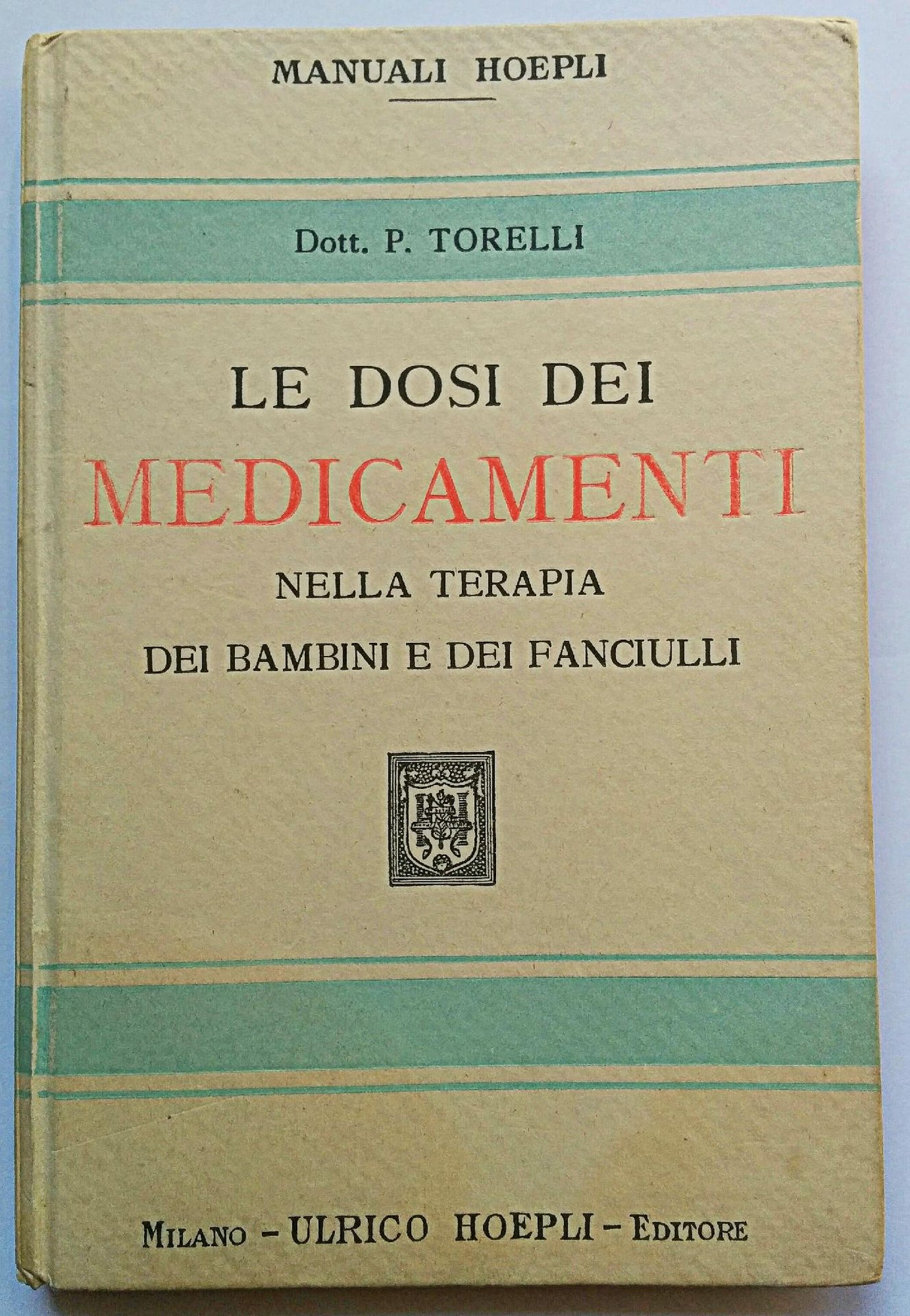 >in-24, pp. 107, legatura in cartonato editoriale bianco e azzurro, titoli al dorso e al piatto anteriore, tagli rossi. Seconda edizione (la prima 1906), come si evince dalla doppia prefazione dell'A. L'opera si prefigura come un sintentico e pratico compendio posologico dei farmaci da somministrare all'infanzia, espresso in tavole sinottiche che occupano la prima parte del volume e a cui fanno seguito tabelle "vuote" da compilarsi a cura del lettore. Vi sono poi brevi capitoli sull'alimentazione dei bambini, l'idroterapia, gli avvelenamenti e relativi antidoti, e un formulario dei più comuni malanni dell'infanzia in ordine alfabetico con indicati ingredienti e dosi dei trattamenti. Rarissimo. Buon esemplare (uniforme brunitura della carta).