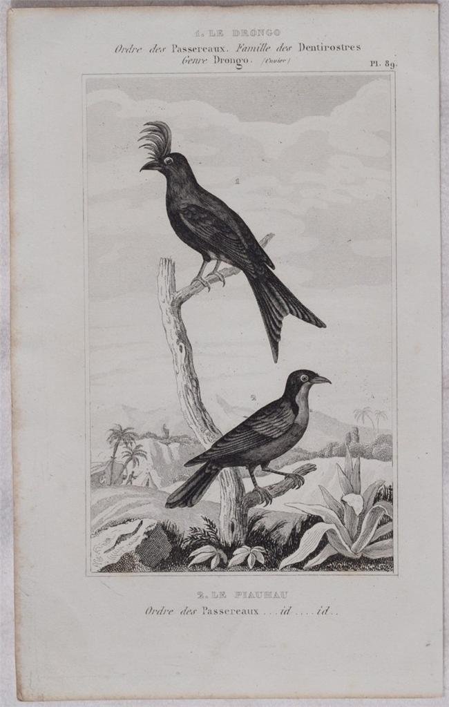 Bella incisione probabilmente della metà del XIX secolo tratta dalla monumentale opera di storia naturale di Buffon, carta spessa. L'incisione rappresenta due specie di uccelli (Drongo). In buone condizioni, fioriture. Usure al margine sinistro. TECNICA: Incisione DIMENSIONI FOGLIO: cm 20x12,5 DIMENSIONI INCISIONE: cm 14x9 EPOCA: 1850 circa Buffon fu un'esponente del movimento scientifico legato all'illuminismo e le sue teorie influenzarono le generazioni successive di naturalisti in particolare Jean Baptiste Lamarck e Charles Darwin. Questa è la sua opera più celebre ed è l'"Histoire Naturelle" pubblicata per la prima volta tra il 1749 ed il 1789 in 36 volumi di cui 8 postumi grazie al lavoro di Bernard Lacepede. Buffon espone tutto il sapere dell'epoca nel campo delle scienze naturali e proprio in questo scritto rilevò le somiglianze tra l'uomo e la scimmia e la possibilità di una genealogia comune. Nice engraving of probably half of the XIX century, taken from the monumental work of natural history by Buffon, wide paper. The engraving represents two species of bird (the drongo). In good conditions, foxings. Wearings in the left edge. TECHNIQUE: Print LEAF SIZE: cm 20x12,5 PRINT'S SIZE: cm 14x9 PERIOD: 1850 circa Buffon was an exponent of the scientific movement connected to illuminism and his theories inspired the next generations of naturalists in particular Jean Baptiste Lamarck and Charles Darwin. His most famous work is l'"Histoire Naturelle" published for the first time between 1749 and 1789 in 36 volumes of which 8 are posthumous thanks to the work of Bernard Lacepede. Buffon exposes in the work all the notions in natural history and in this writing in particular underlined the similarity between monkeys and man with a possibility of common genealogy.