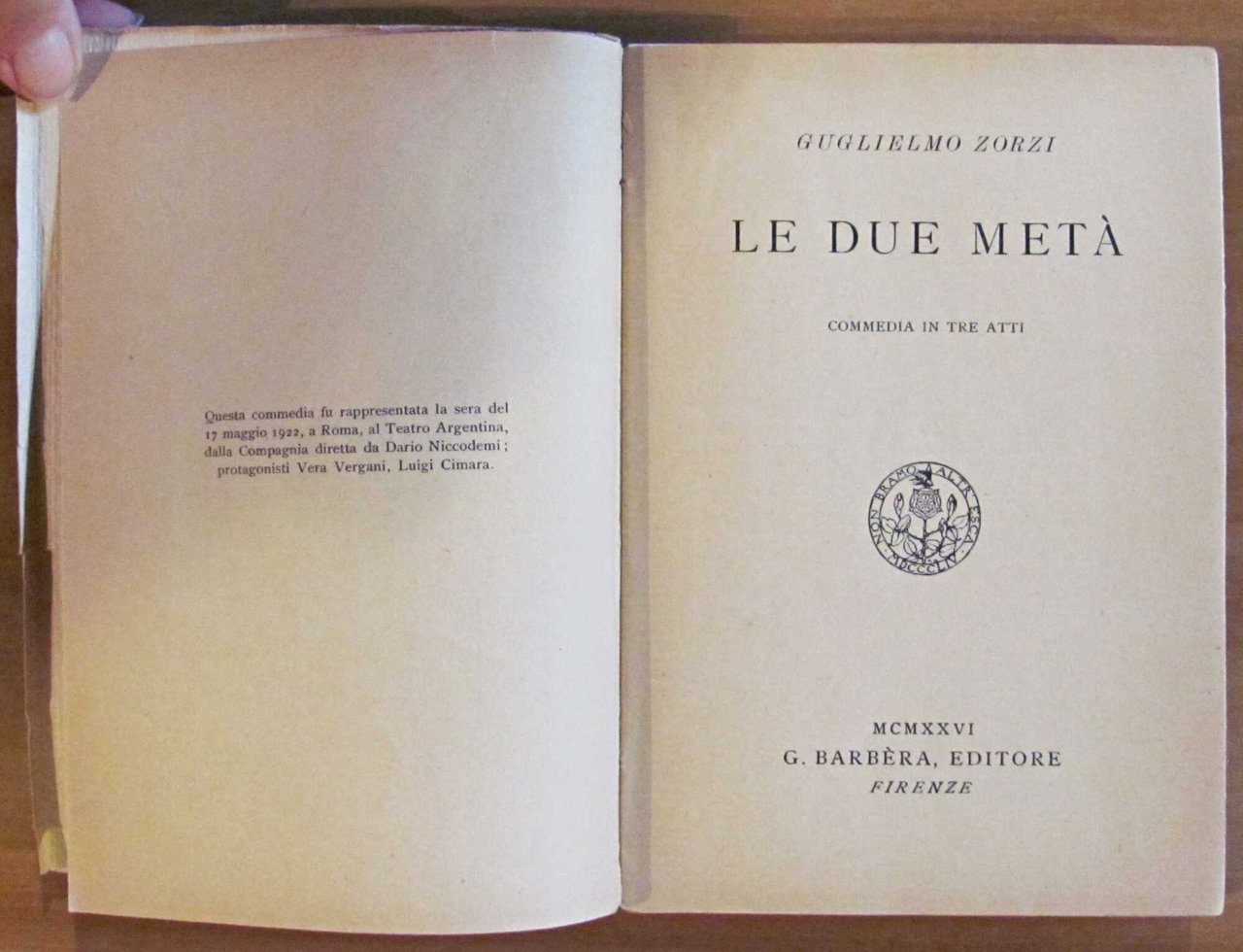 LE DUE META' - Commedia in III atti con Dedica Autografa, 1926