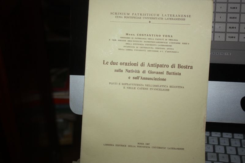 CODICE 3186, Le due orazioni di Antipatro di Bostra sulla natività di Giovanni Battista e sull'Annunciazione., Costantino Vona, Lateran University Press, , Città del Vaticano, 1967; br., pp. 138., (Scrinium patristicum lateranense. 3)., , collana: Scrinium Patristicum Lateranense