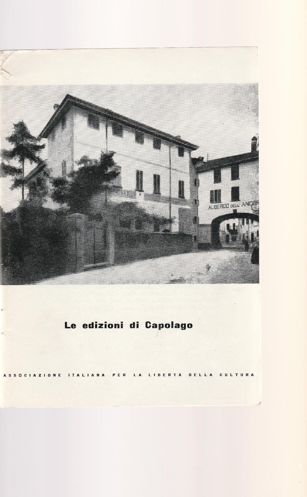 LE EDIZIONI DI CAPOLAGO MOSTRA DI UNA SELEZIONE DELLE EDIZIONI DELLA TIPOGRAFIA ELVETICA DI CAPOLAGO ALLESTITA A CURA DELLA ASSOCIAZIONE ITALIANA PER LA LIBERT¿ DELLA CULTURE, PALAZZO FIRENZE, ROMA, 26 NOVEMBRE-4 DICEMBRE 1960 L2427 COPERTINA MORBIDA EDITORIALE CON UNO STRAPPO AL MARGINE SUPERIORE, LIEVI SEGNI DEL TEMPO IN BUONE CONDIZIONI N. PAG. 54 CM. 21 X 15,5