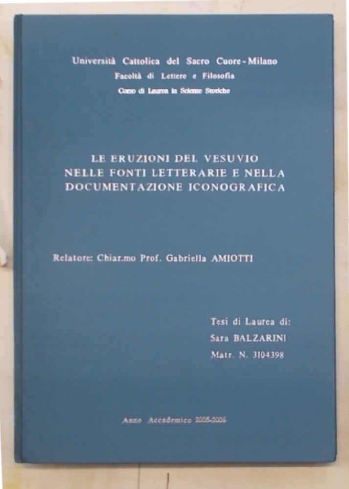 Le eruzioni del Vesuvio nelle fonti letterarie e nella documentazione iconografica.