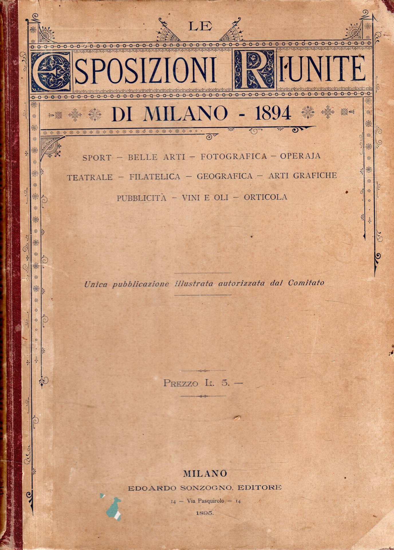 Le Esposizioni Riunite di Milano 1894. Sport, Belle Arti, Fotografia, Operaja, Teatrale, Filatelica, Geografica, Arti Grafiche, Pubblicità, Vini e Oli, Orticola