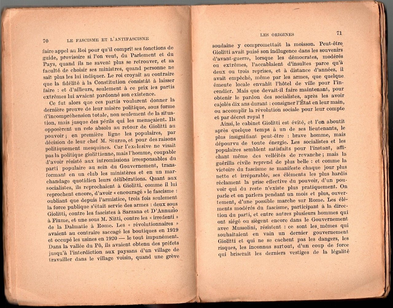 LE FASCISME ET L'ANTIFASCISME EN ITALIE di M Rocca 1930 Felix Alcan Libro