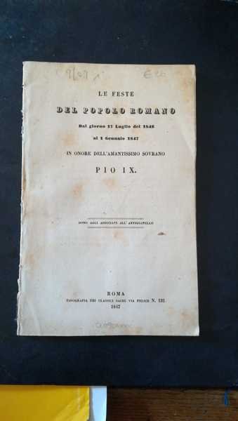 Le feste del popolo romano dal giorno 17 luglio del 1846 al 1 gennaio 1847 in onore dell'amatissimo sovrano Pio IX