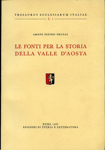 In-8°, pp. 378, brossura editoriale. 52 illustrazioni f.t. Ottimo stato. Prima edizione, primo volume del 'Thesaurus Ecclesiarum Italiae'. Importante monografia sulle fonti storiche valdostane, soprattutto in relazione alla storia ecclesiastica, con capitoli dedicati alle biblioteche e agli archivi. Prefazione di Jea Leflon.