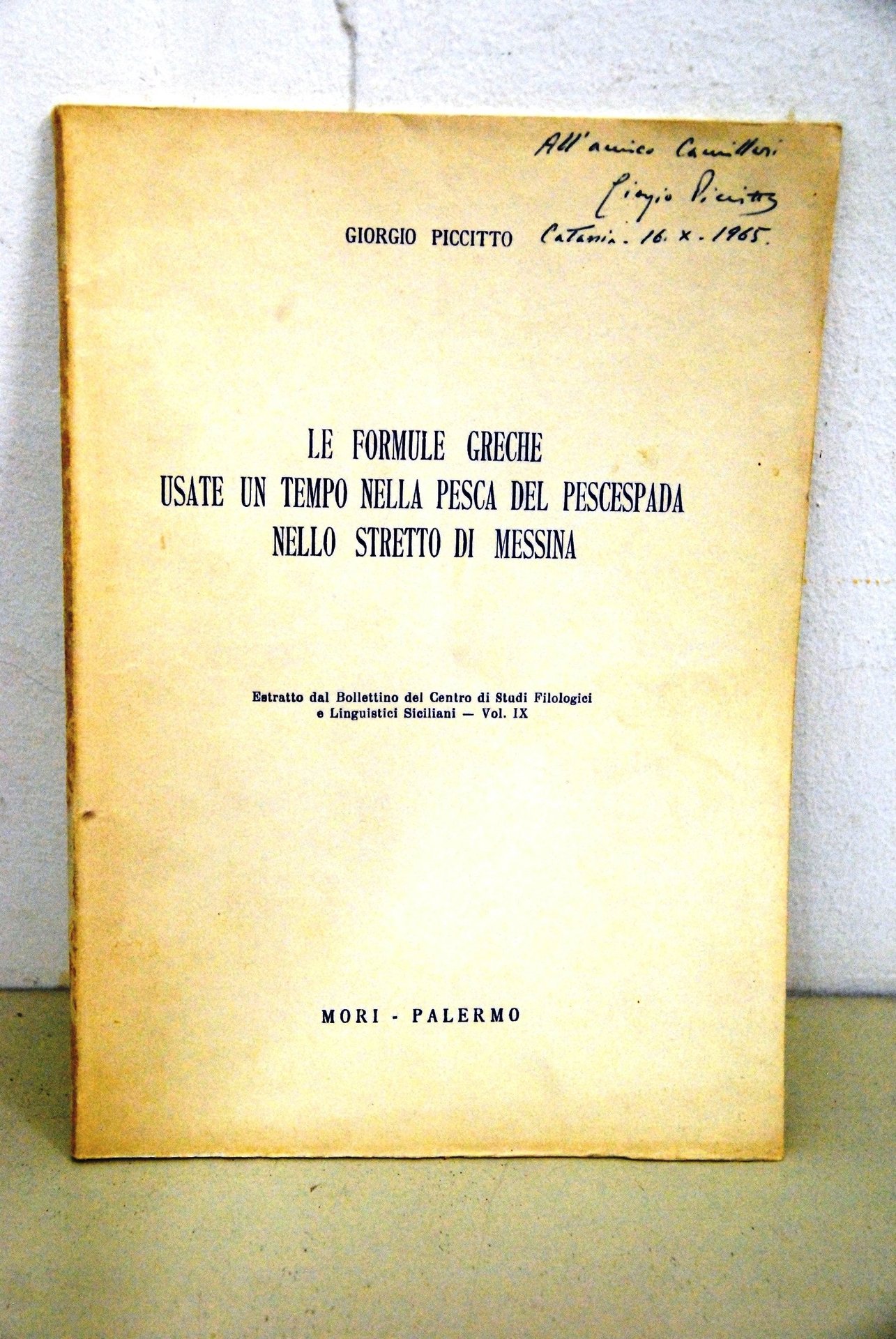 giorgio piccitto le formule greche usate un tempo nella pesca del pescespada nello stretto di messina DEDICA E FIRMA AUTOGRAFATA IN COPERTINA. .
