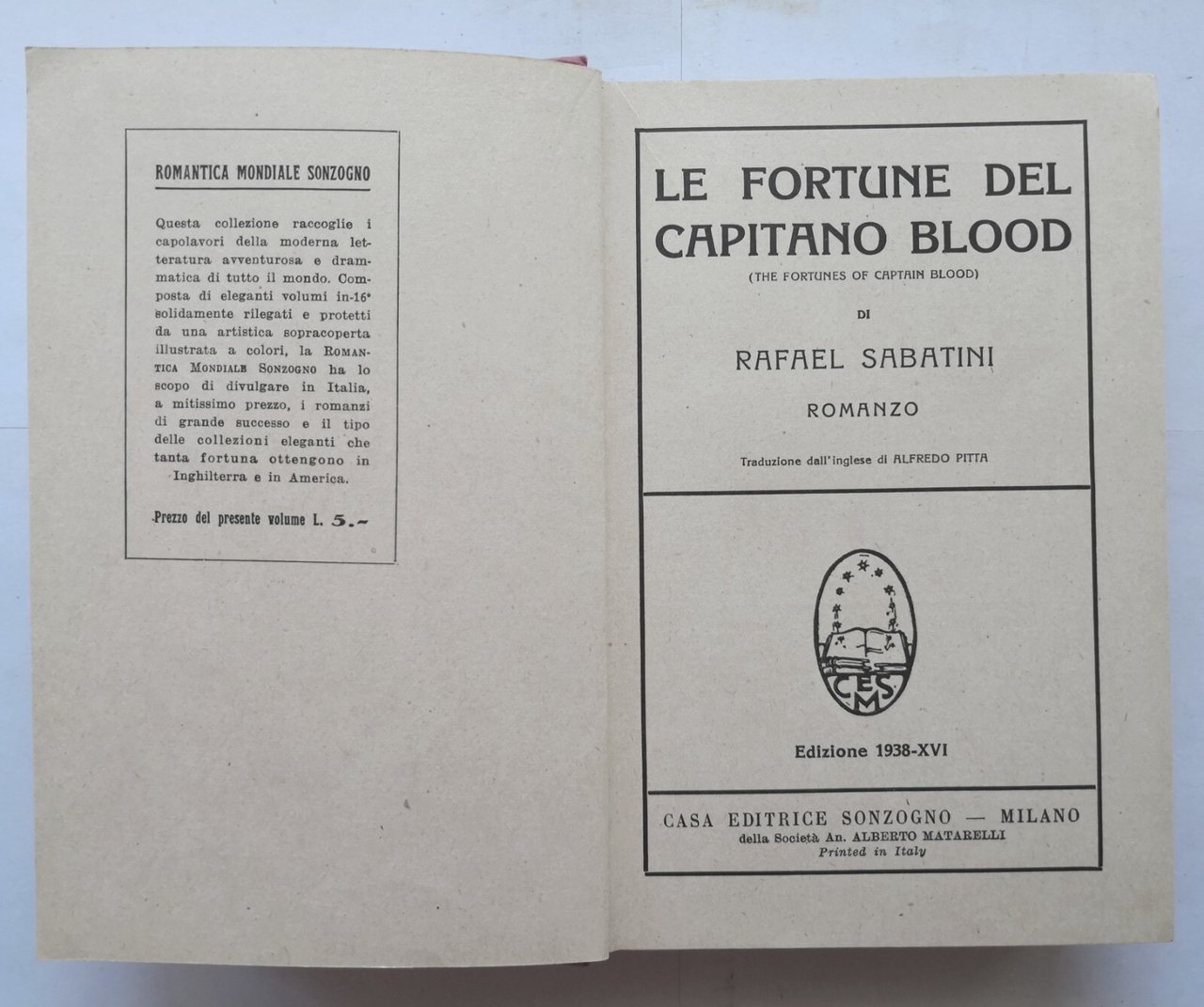 LE FORTUNE DEL CAPITANO BLOOD di Rafael Sabatini 1938 Sonzogno Libro romanzo