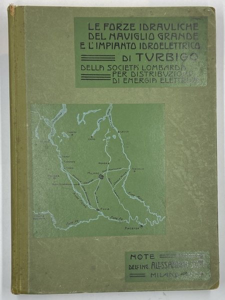 Legatura editoriale in mezza tela con illustrazione cartografica e eleganti titoli di gusto secessionista sul piatto anteriore, cm24x33, pp 24 di testo, con figure in nero, 9 tavole ripiegate a colori (topografiche, idrografiche, sezioni e piante della centrale), 56 tavole in carta forte con belle fotografie in rotocalco della costruzione degli impianti.
