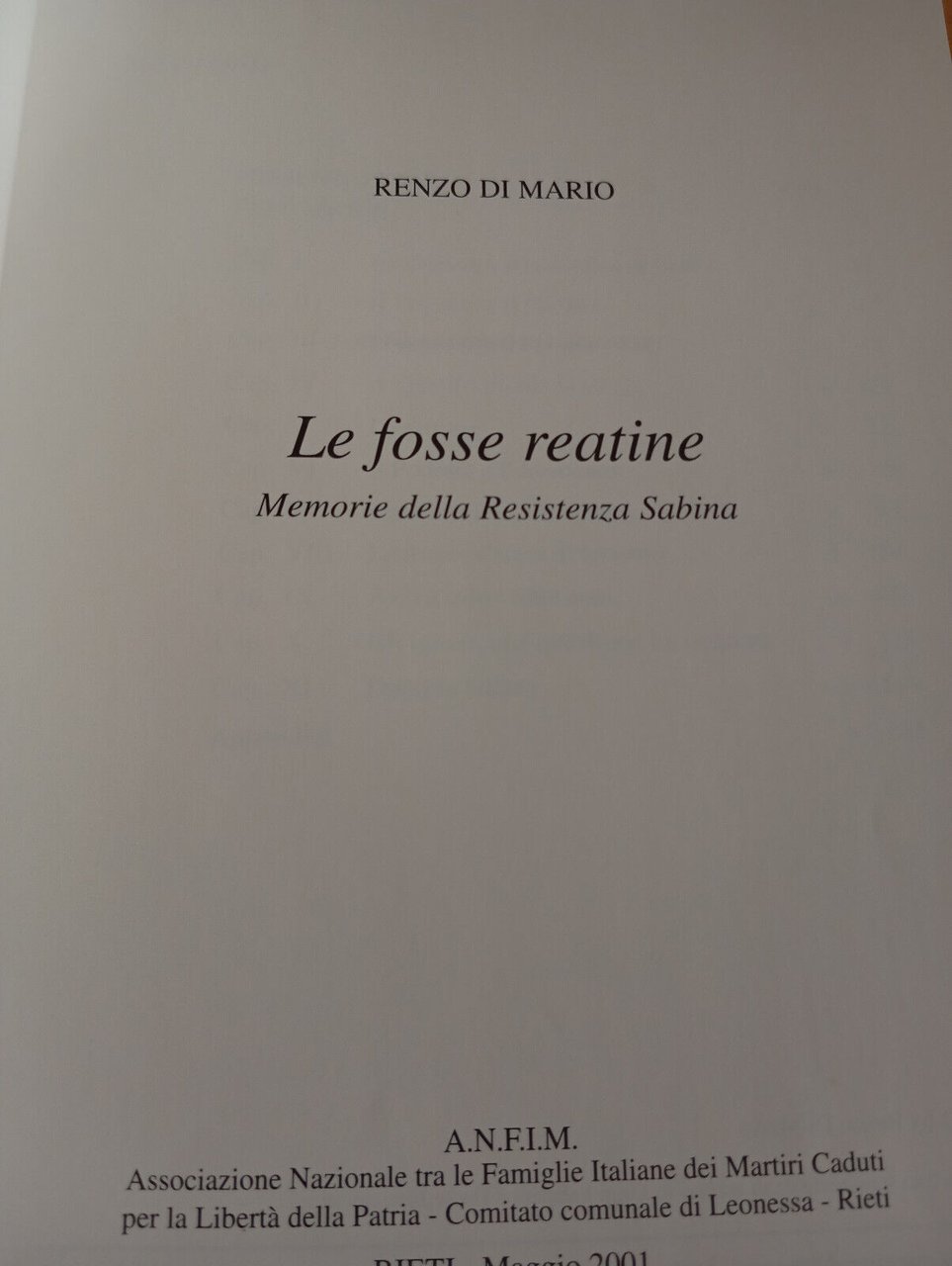 Le fosse reatine. Momorie della resistenza sabina, Renzo Di Mario, 2001