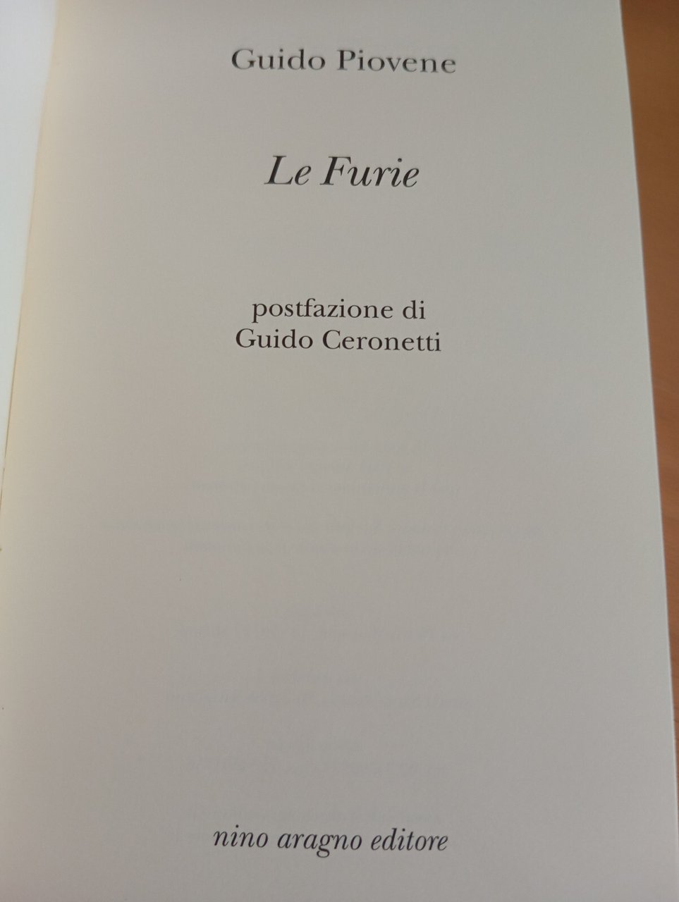 Le furie, Guido Piovene, Nino Aragno Editore, Postfazione G. Ceronetti, 2009