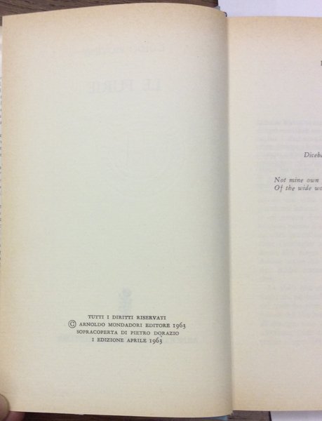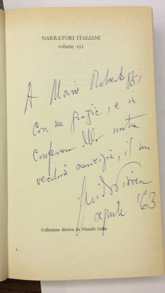 In-16 gr., cartonato editoriale, sovracoperta, pp. 397,(5). "Prima edizione". Ben conservato, con dedica autografa dell'Autore.
