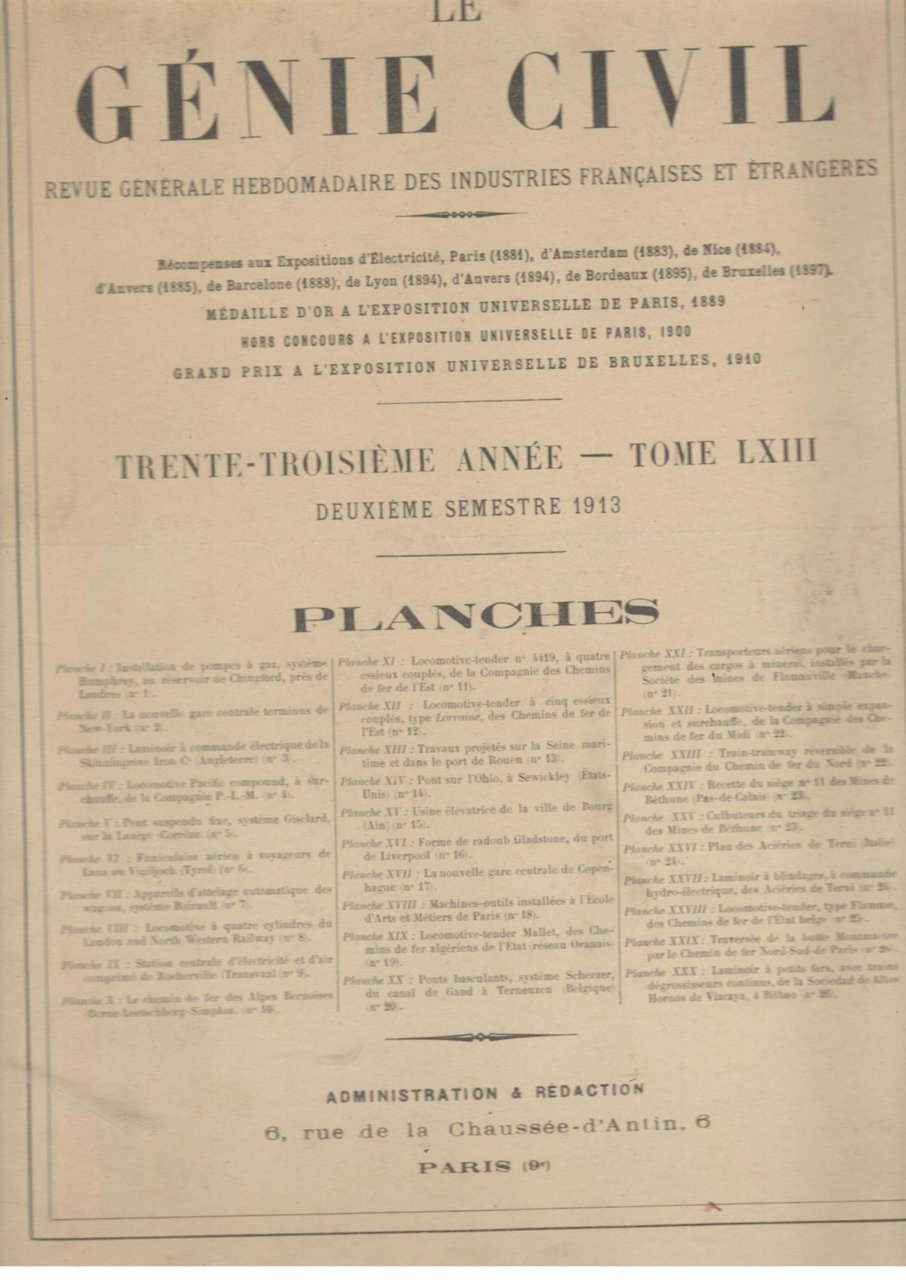 Le Génie Civil. Revue générale hebdomadaire des industries francaises et étrangères (deuxieme semestre 1913)