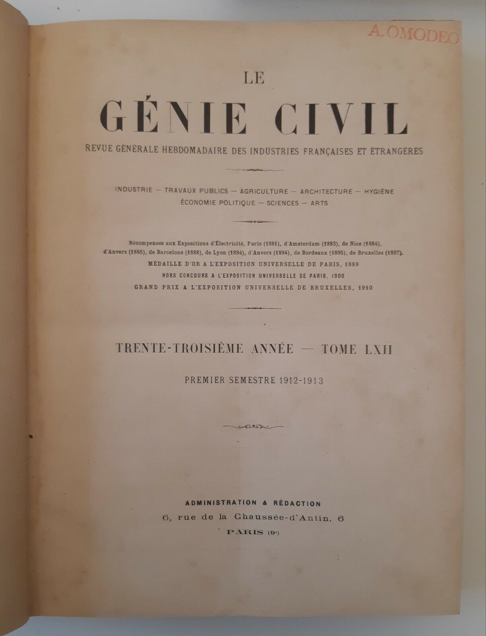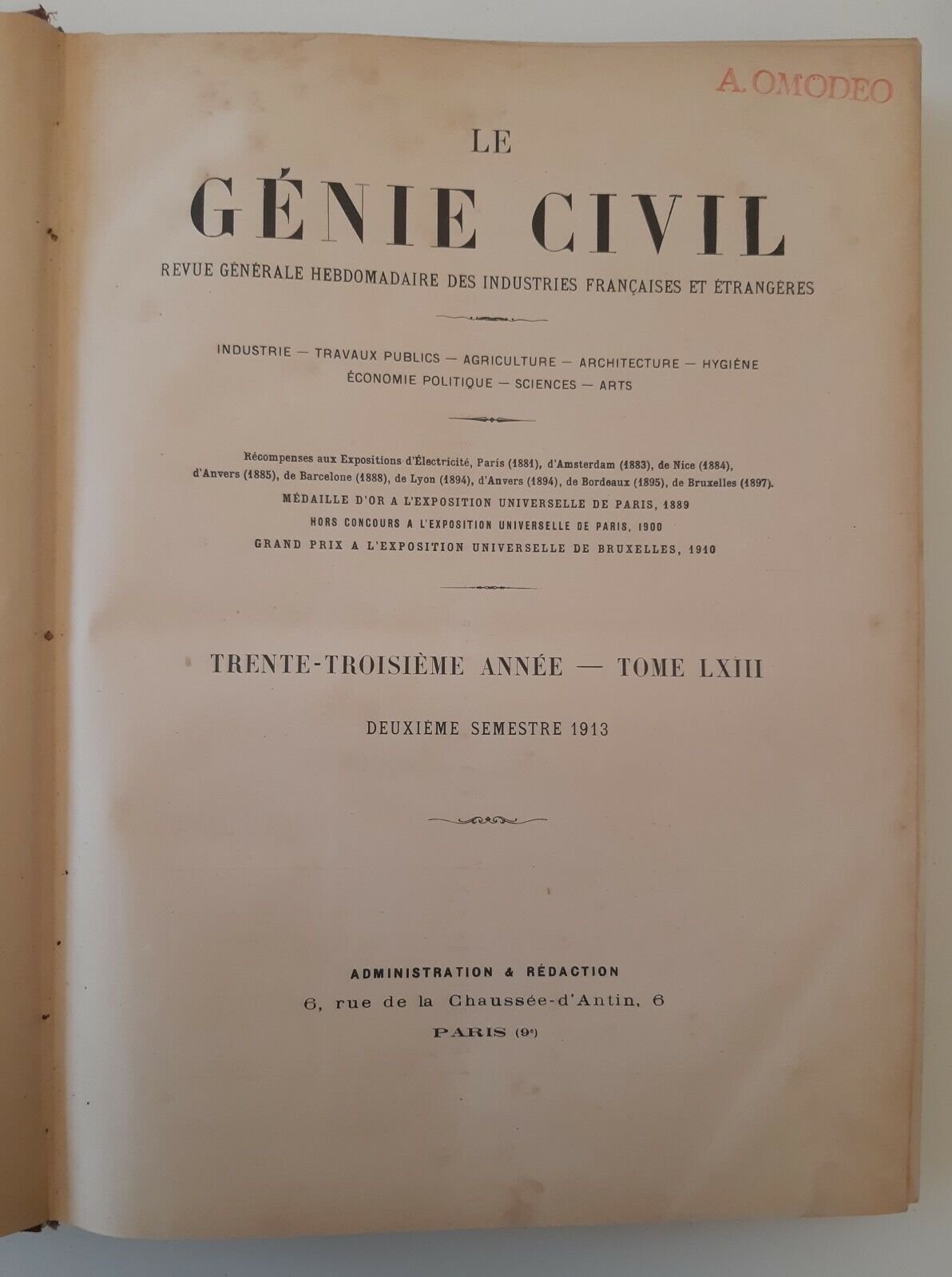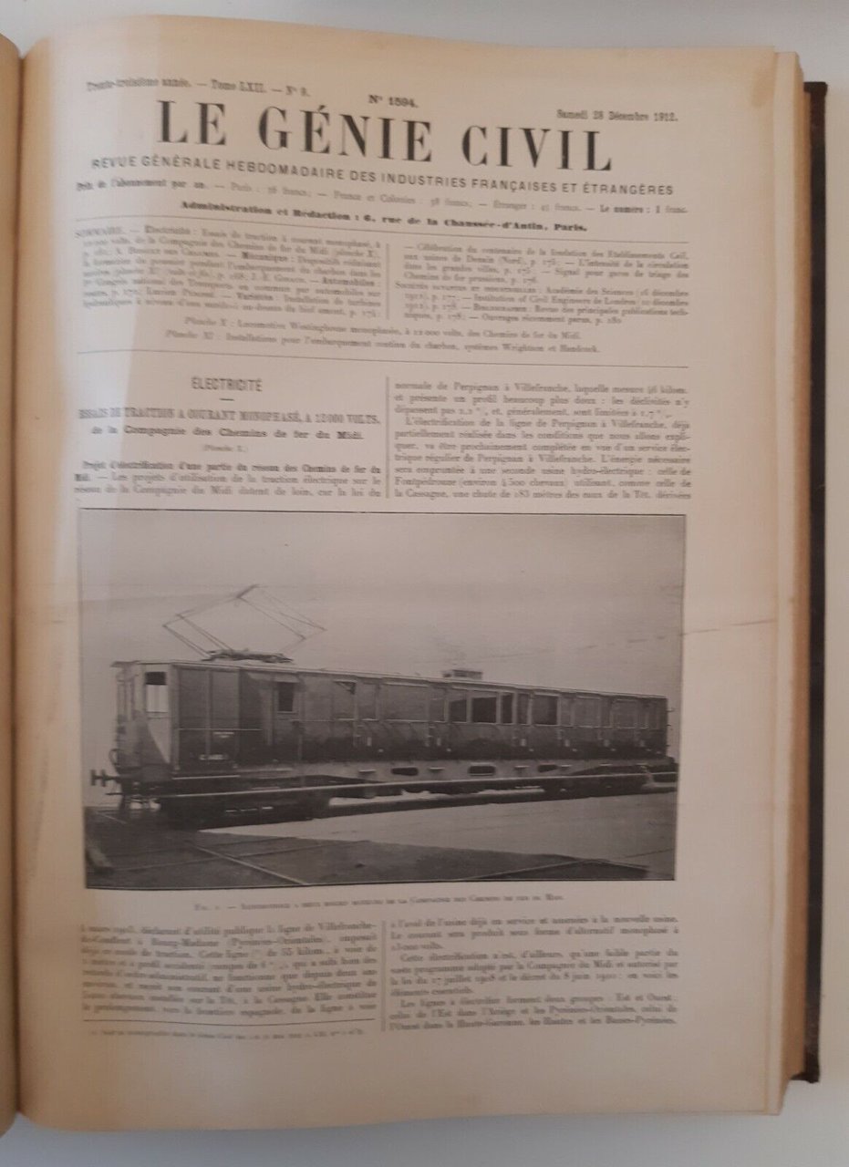 LE GENIE CIVIL REVUE GENERALE HEBDOMADAIRE INDUSTRIES ...ANNATA 1913 2 VOLUMI