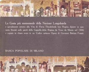 Le Gesta più memorande della Nazione Longobarda e specialmente intorno alla Vita di Flavia Theodolinda loro Regina, dipinte in quaranta Storiati sulle pareti della Cappella detta Regina, da Troso da Monza nel 1444, e copiate in chiaro scuro in un Codice cartaceo Opera di Giovanni Battista Fossati