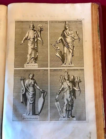 Folio (cm. 38), 9 cc.nn. (compresa splendida antiporta allegorica sottoscritta da C. Luijken), 126 pp., 2 cc.nn. Con 43 tavv. incise su rame f.t. Frontespizio in rosso e nero con grande vignetta calcografica, Testata con stemma del Dedicatario dell’opera, fregi e capilettera xilografici. Legatura in mz. pelle con nervi e titolo oro su tassello al ds. Piatti rinnovati in zigrino rosso scuro. Tagli rossi. Carte di guardia a pettine. Lievi arrossature sparse, un paio di carte leggermente brunite ed un taglio parzialmente riparato senza alcuna perdita alle pp. 67-68. Nel complesso esemplare in ottimo stato di conservazione. Cfr. De Rossi, 5941; Vinet, 1448.