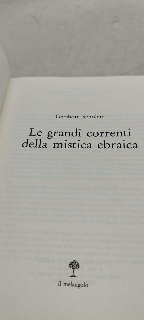 gershom scholem le grandi correnti della mistica ebraica. , il melangolo - italiano, °°