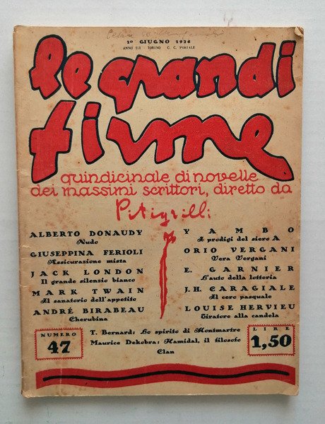 rivista quindicinale N.47 del 1926 form. 18,5X24. Con testi di A.Donaudy - J.London - M.Twain - A.Bbirabeau - Yambo - O.Vergani e altri pp. 48. Bella copia