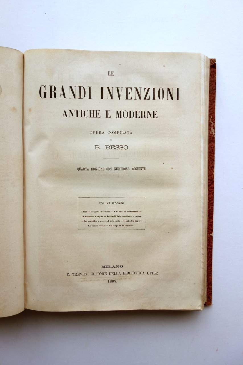 Le Grandi Invenzioni Antiche e Moderne Besso Biblioteca Utile 1869-71 3 Volumi