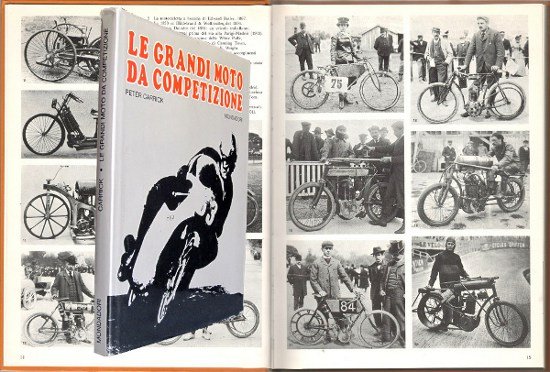 In 4to (cm 28,5x21) cartonatura editoriale con sovraccoperta (piccola piega), pag 142 interamente illustrate a colori e b/n molte a piena pagina. -- Un panorama completo delle varie fasi dello sviluppo dello sport della motocicletta.