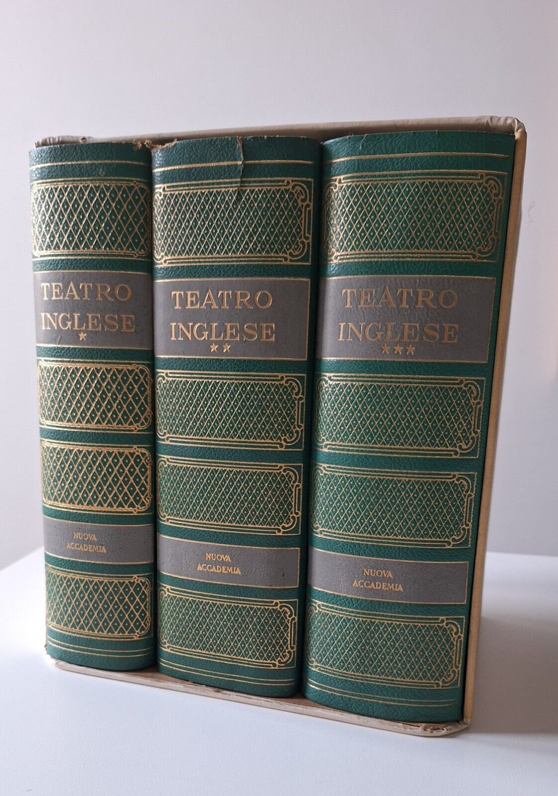 LE GRANDI OPERE DEL TEATRO INGLESE NUOVA ACCADEMIAIn 8°, 3 volumi, legatura editoriale, copertine in similpelle, custodia illustrata.Taglio al dorso di un volume, lievissimi segni alla custodia.TUTTI I NOSTRI LIBRI SONO VISIBILI PREVIO CONTATTO MAIL, TELEFONO O WHATSAPP NELLA NUOVA SEDE DI MILANO: LIBRERIA COSMOPOLIS, VIA JOMMELLI 22, MILANO.3313109672
