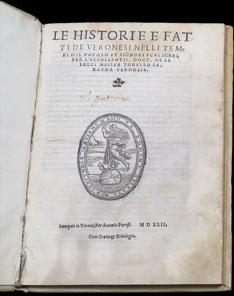 Le Historie e Fatti de Veronesi Nelli Tempi d'il Popolo et Signori Scaligeri, per L'eccellentis. Doct. de le leggi Messer Torello Sarayna Veronese