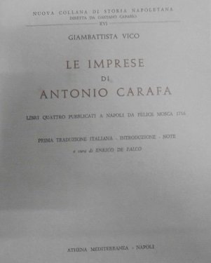 LE IMPRESE DI ANTONIO CARAFA. Libri Quattro Pubblicati a Napoli da Felice Mosca 1716. Prima traduzione Italiana. Introduzione, note a cura di Enrico De Falco.