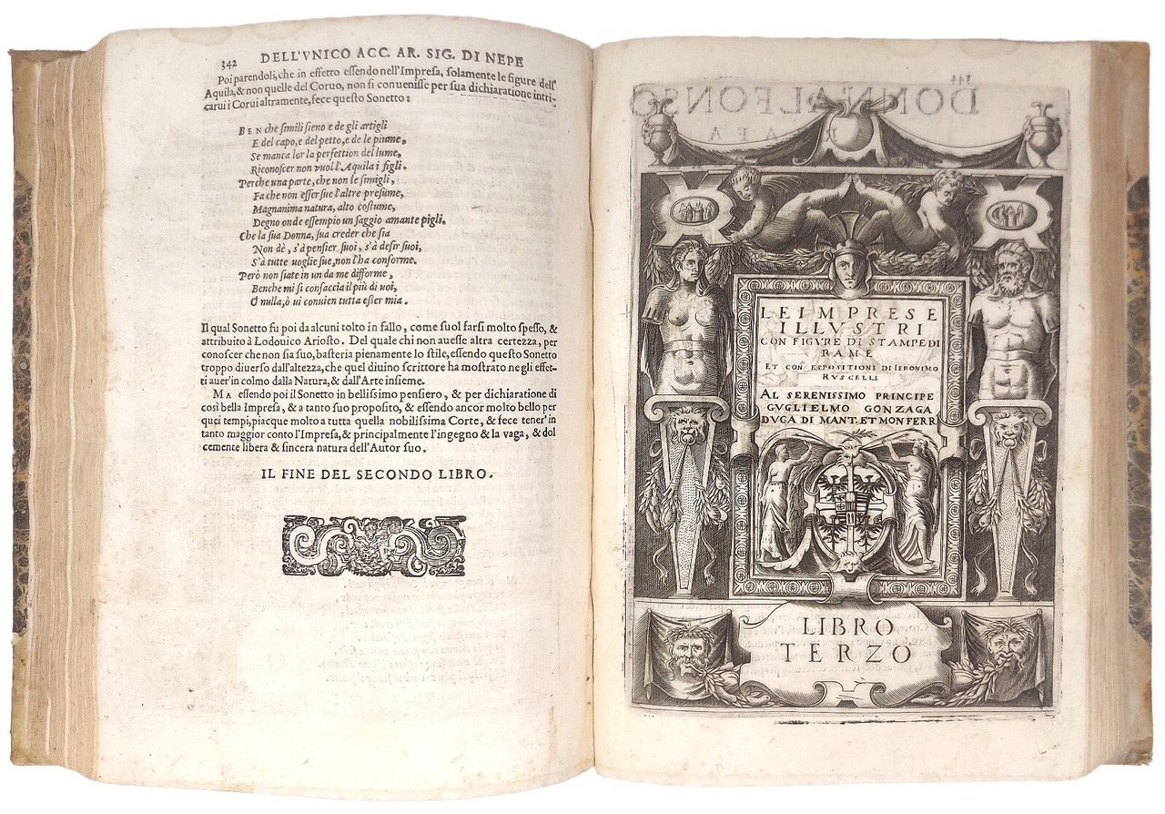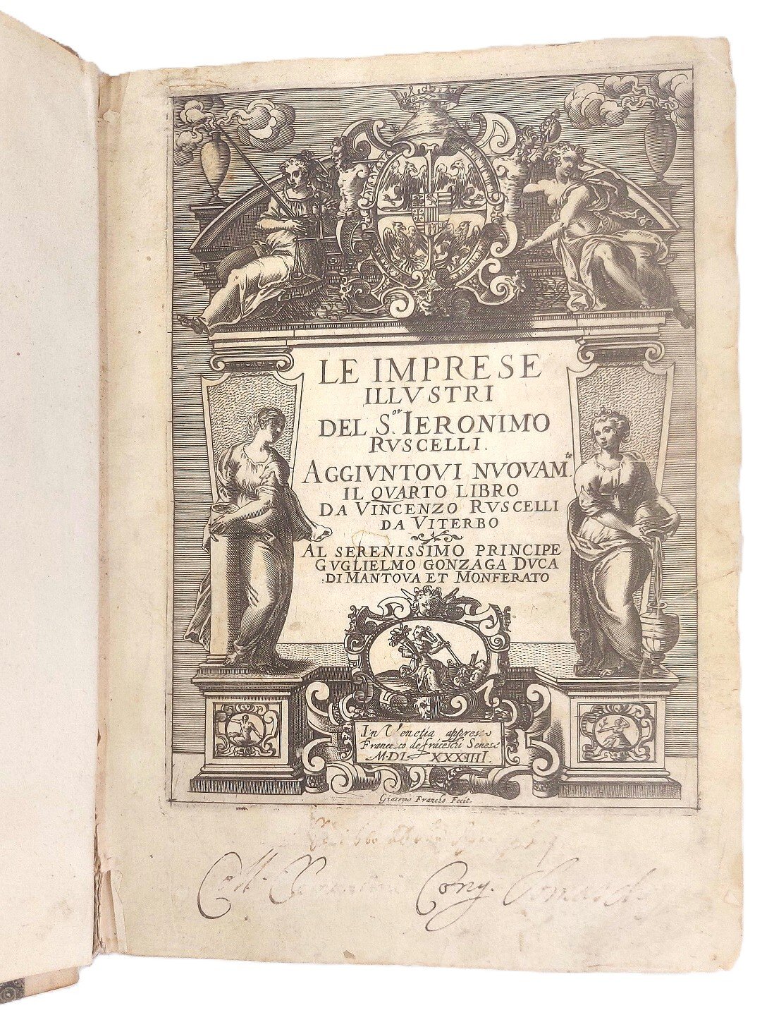 Le Imprese Illustri. Aggiuntovi nuovam. il Quarto Libro da Vincenzo Ruscelli da Viterbo. Al ser.mo Principe Giglielmo Gonzaga Duca di Mantova e Monferrato.