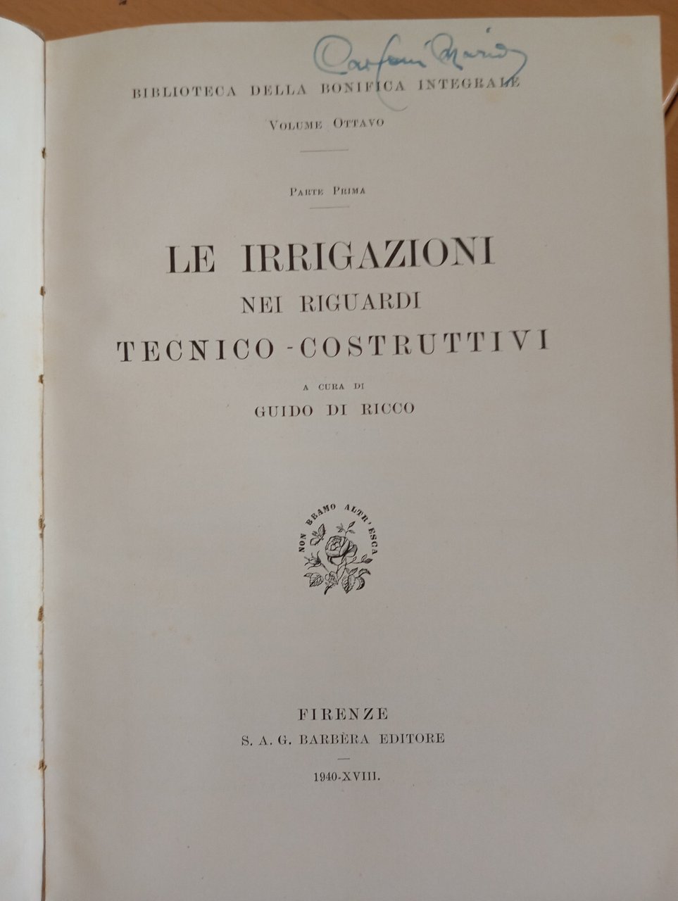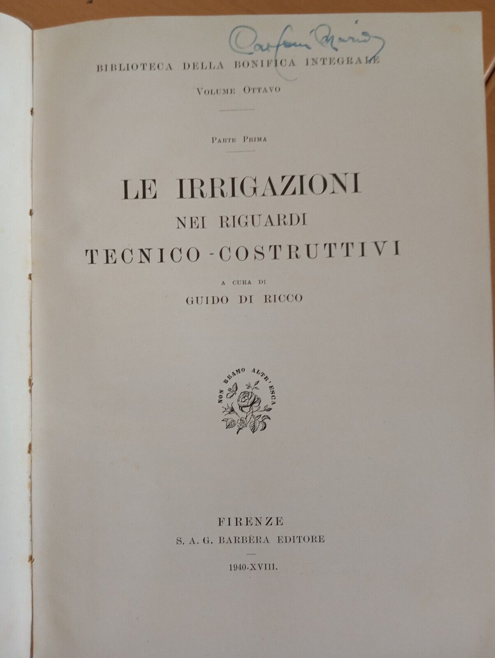 Le irrigazioni nei riguardi tecnico costruttivi, Barbera 1940, per collezionisti