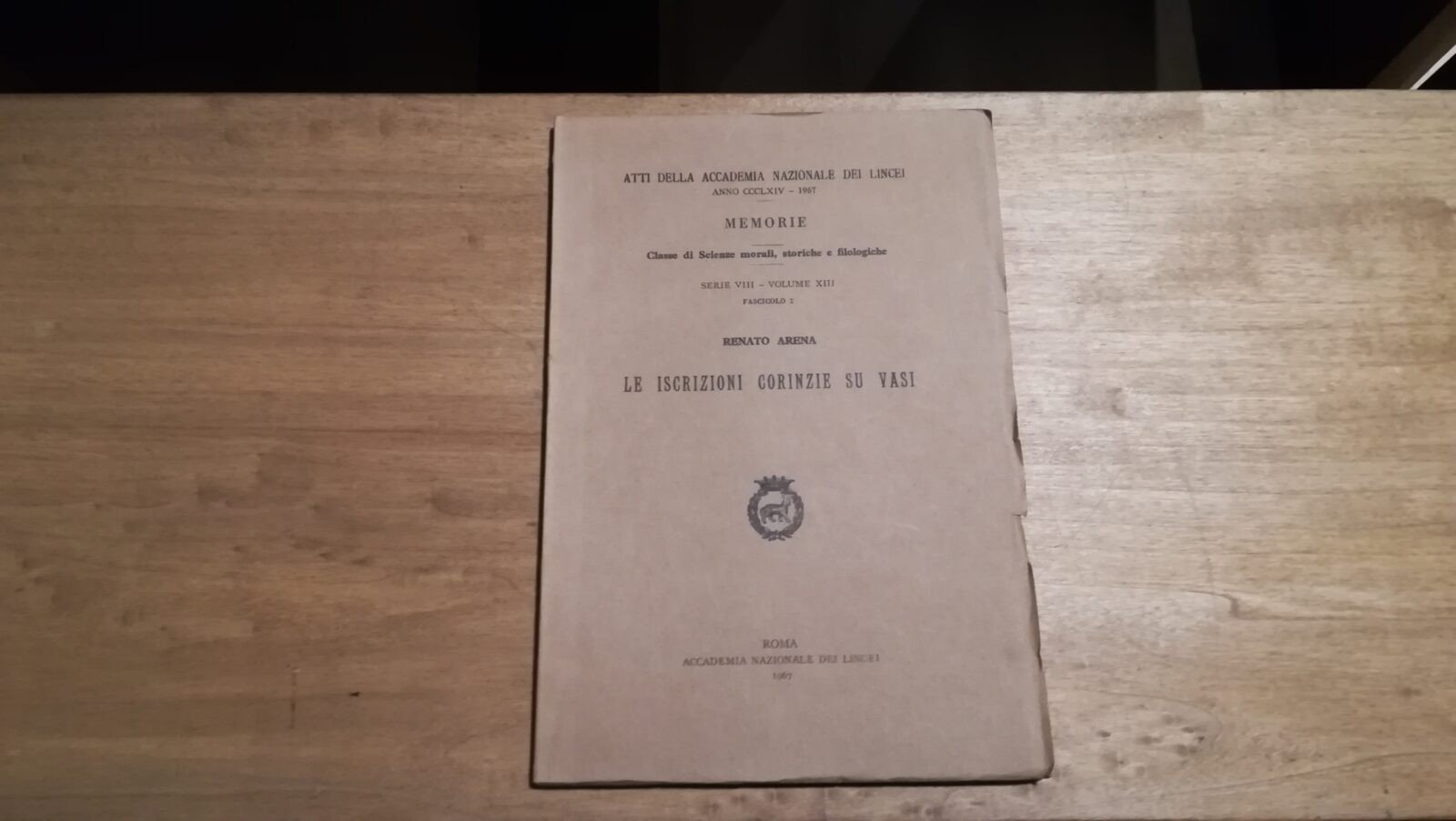 Renato Arena - Le iscrizioni corinzie su vasi Accademia Nazionale dei Lincei - Prima edizione 1967 Dedica di Arena a Giovanni Pugliese Carratelli Libro in ottime condizioni, minimi segni del tempo, pagine leggermente ingiallite. Non esitate a contattarci per altre foto o richieste. Saremo lieti di soddisfare ogni vostra esigenza.