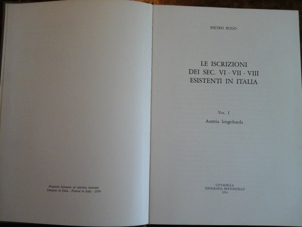 Le iscrizioni dei sec. vi-vii-viii esistenti in Italia. Vol. I Austria Longobarda. Autografo