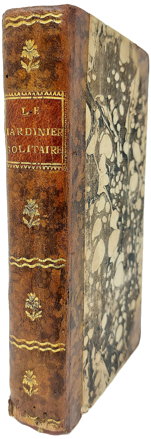 >in-12, pp. XX, 364, leg. coeva in mezza pelle e angoli, tass. granata e fregi al dorso, tagli rossi (forellini di tarlo e mancanza alla cuffia inf.). Nona edizione (prima 1706) di questo trattato in forma di dialogo dedicato all'arte del giardinaggio, raro soggetto. Tra gli argomenti trattati ci sono la creazione di un frutteto, di un orto, i cicli produttivi, i rimedi a parassiti e malattie... La presente edizione è inoltre arricchita da una sezione che concerne gli alberi. Il trattato, apparso in forma anonima, è attribuito al monaco certosino François Gentil. Buon esemplare ma alcuni ff. bruniti. Barbier, Anonymes, II, 982.