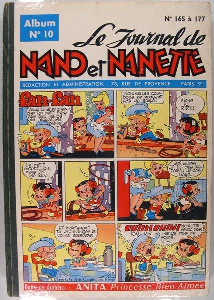 Editions de Chateaudun 1960, Album in/4, reliure éditeur illustrée en couleurs, journal hebdomadaire du N° 165 à 177 soit 13 numéros, Album N° 10. Chaque N° 26 pages. Avec Fan-Fan, Laideron, Anita Princesse Bien-Aimée, Blonde crinière., in fine des jeux.