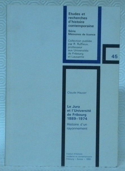 Le Jura et l’Université de Fribourg 1889-1974. Histoire d’un rayonnement. Collection Etudes et recherches d’histoire contemporaine.
