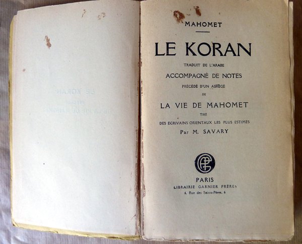 Le Koran. Traduit de l'arabe, acompagné de notes, précédé d'un abrégé de La Vie de Mahomet tiré des écrivains orientaux les plus estimés par M. Savary.