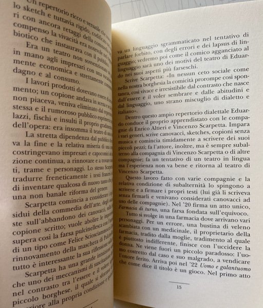 Soggetti: Teatro Napoletano, Attori e registi, Eduardo De Filippo, Classici, Testi teatrali, Dialetto napoletano, Questi fantasmi, Novecento, Cantata dei giorni dispari, Drammaturgia, Pessimismo, Mammasantissima, Eduardo Scarpetta, Peppino, Titina, Regina Bianchi, Lando Buzzanca, Enzo Cannavale, Opere teatrali, Fame, Società, Giulio Baffi, Costume, Sceneggiata, Folklore, Libri rari, Critica letteraria, Letteratura teatrale, Testi teatrali classici, Dialetti, Commedia popolare, Libri Vintage Fuori catalogo, Napoli, Napoletanità, Personaggi, Neapolitan theater, Actors and directors, Classics, Theatrical texts, Neapolitan dialect, These ghosts, Twentieth century, Odd day, Dramaturgy, Pessimism, Theatrical works, Hunger, Society, Costume, Scened, Rare books, Literary criticism, Theatrical literature, Texts classic theatricals, Popular comedy, Books out of print, Naples, Characters, Sketch, Riferimento, Bibliografia, Autori, Miseria, Nobiltà, Fame, Analisi sociologica, Teoria, Borghesia, Classe media, Messinscene televisive, Rai, Napoli milionaria, Filumena Marturano, Natale in casa Cupiello, Valentina Valentini, Bulzoni, Collezionismo, Libri rari, Letture critiche, Lettura, Dramma moderno, Capolavori, Bestsellers, Immagine, Finzione, Cinema, Reference, Bibliography, Authors, Misery, Nobility, Hunger, Sociological analysis, Lessons, Theory, Bourgeoisie, Middle class, Television staging, Christmas, Collecting, Rare books, Critical readings, Reading, Modern drama, Masterpieces, Bestsellers, Image, Fiction