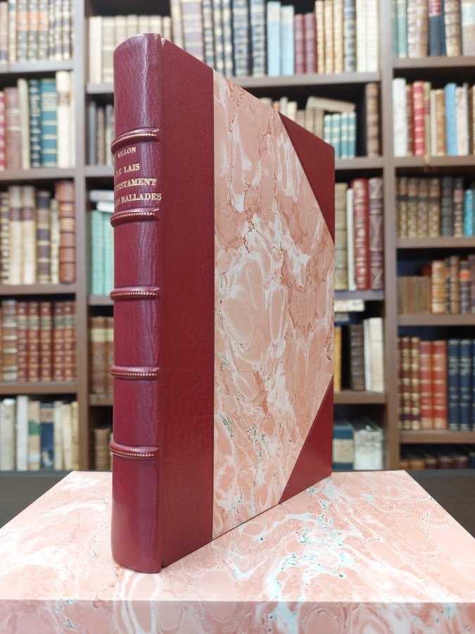 In-8° (cm. 21,3), graziosa legatura coeva d'amatore in mezza pelle bordeaux ad angoli, dorso con titolo e filetti puntinati in oro ai nervi, taglio superiore dorato, piatti e risguardi marmorizzati; conservata la brossura originale a stampa avorio con illustrazione e titolo in rosso e nero; pp. XL 283 [5] in barbe, in ottimo stato; 10 tavole fuori testo, di cui 1 all'antiporta e alcune illustrazioni in sanguigna nel testo. Testo originale con commento di Ferdinando Neri. Marca tipografica in silografia al frontespizio con titoli in rosso e nero. Superbo esemplare conservato in custodia cartonata con la stessa marmorizzatura dei piatti e con interno felpato. (NR1)
