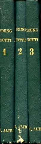 3 voll. in-24°, pp. 140, (4); 116; 122, (6); legatura cova t. tela verde con titolo in oro ai dorsi e decori a secco ai piatti. Bell'esemplare. Libera traduzione italiana delle 'Notti' di Young, tra i più importanti testi della letteratura protoromantica europea.