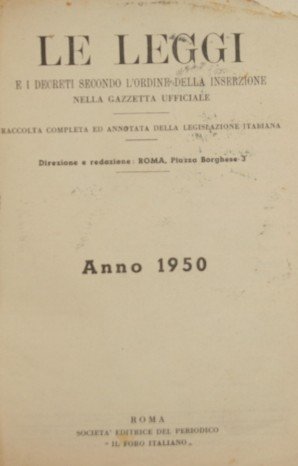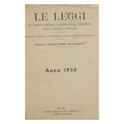 Raccolta completa ed annotata della legislazione italiana - in 16° - pp.736 + XXIX - Mezza tela dorso con titolo in oro - Testo su due colonne - Strappo al frontespizio, fioriture alle pagine