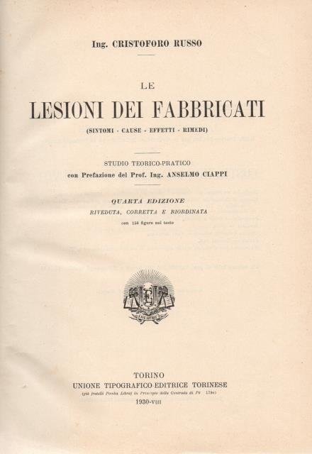 Le lesioni dei fabbricati (sintomi – cause – effetti – rimedi). Studio teorico – pratico con Prafazione del Prof. Ing. Anselmo Ciappi.